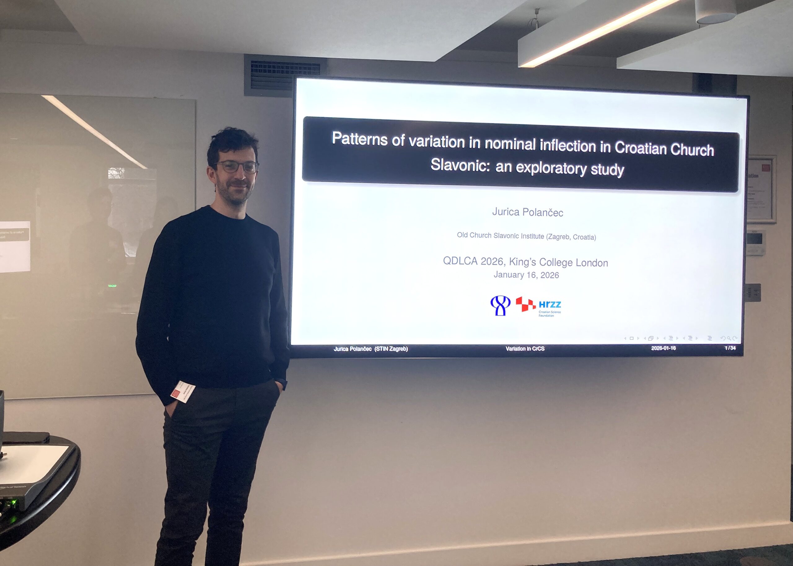 Dr. sc. Jurica Polančec, član projektnoga tima, sudjelovao je na međunarodnoj konferenciji Quantitative Diachronic Linguistics and Cultural Analytics: Data-Driven Insights into Language and Cultural Change, održanoj 15. i 16. siječnja 2026. na sveučilištu King’s College u Londonu, Ujedinjeno Kraljevstvo.