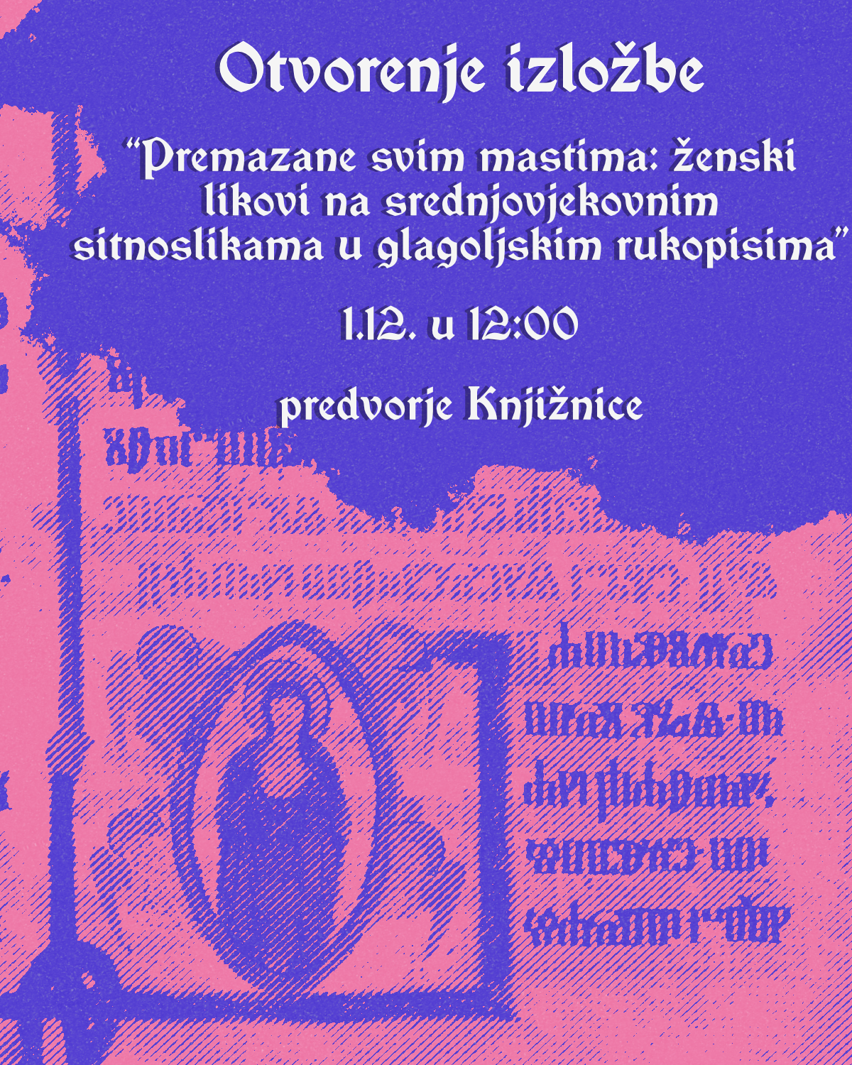 U okviru znanstvenoga projekta Žene i žensko u srednjovjekovnom i ranonovovjekovnom glagoljaštvu (FEMIGLA) i u godini obilježavanja 11 stoljeća hrvatskoga glagoljaštva (925. – 2025.) postavlja se izložba Premazane svim mastima: ženski likovi na srednjovjekovnim sitnoslikama u glagoljskim rukopisima.